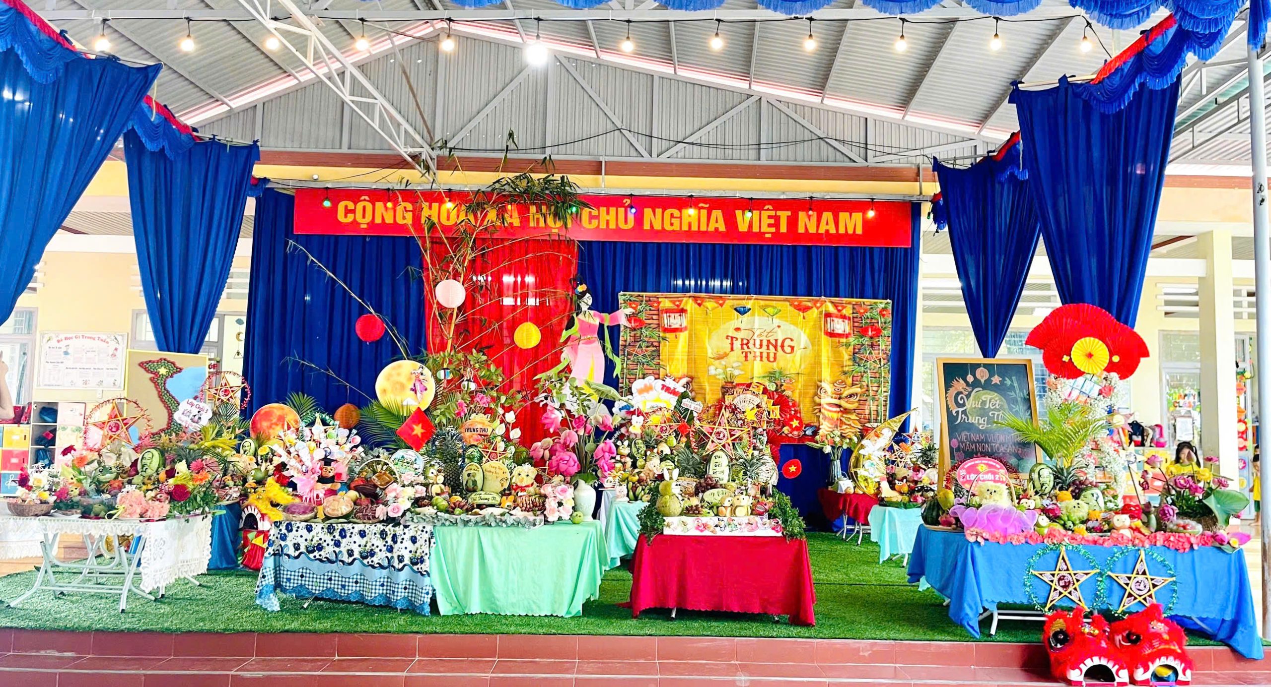 Hình ảnh mâm cỗ trung thu của 11 lớp tham gia hội thi