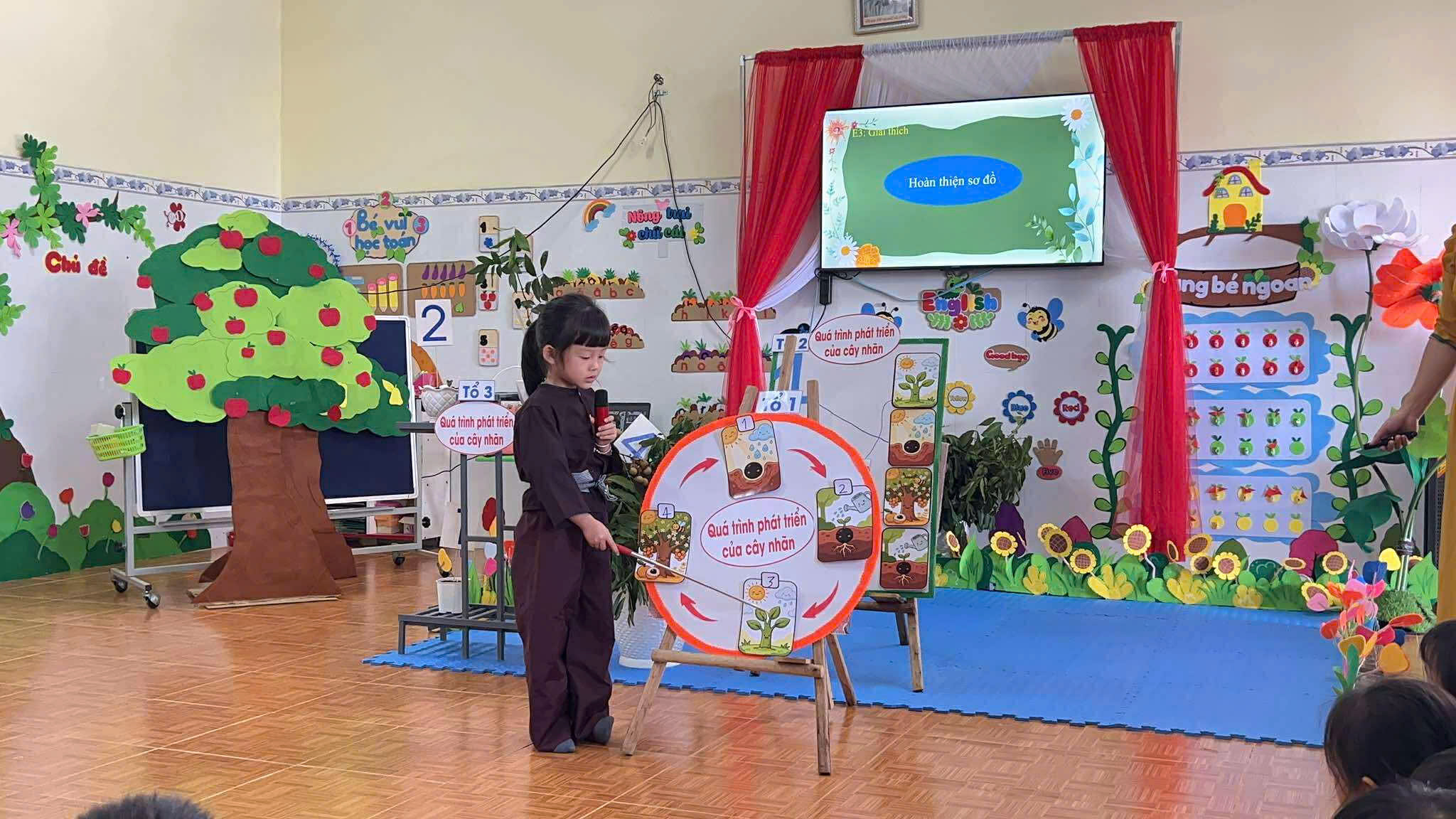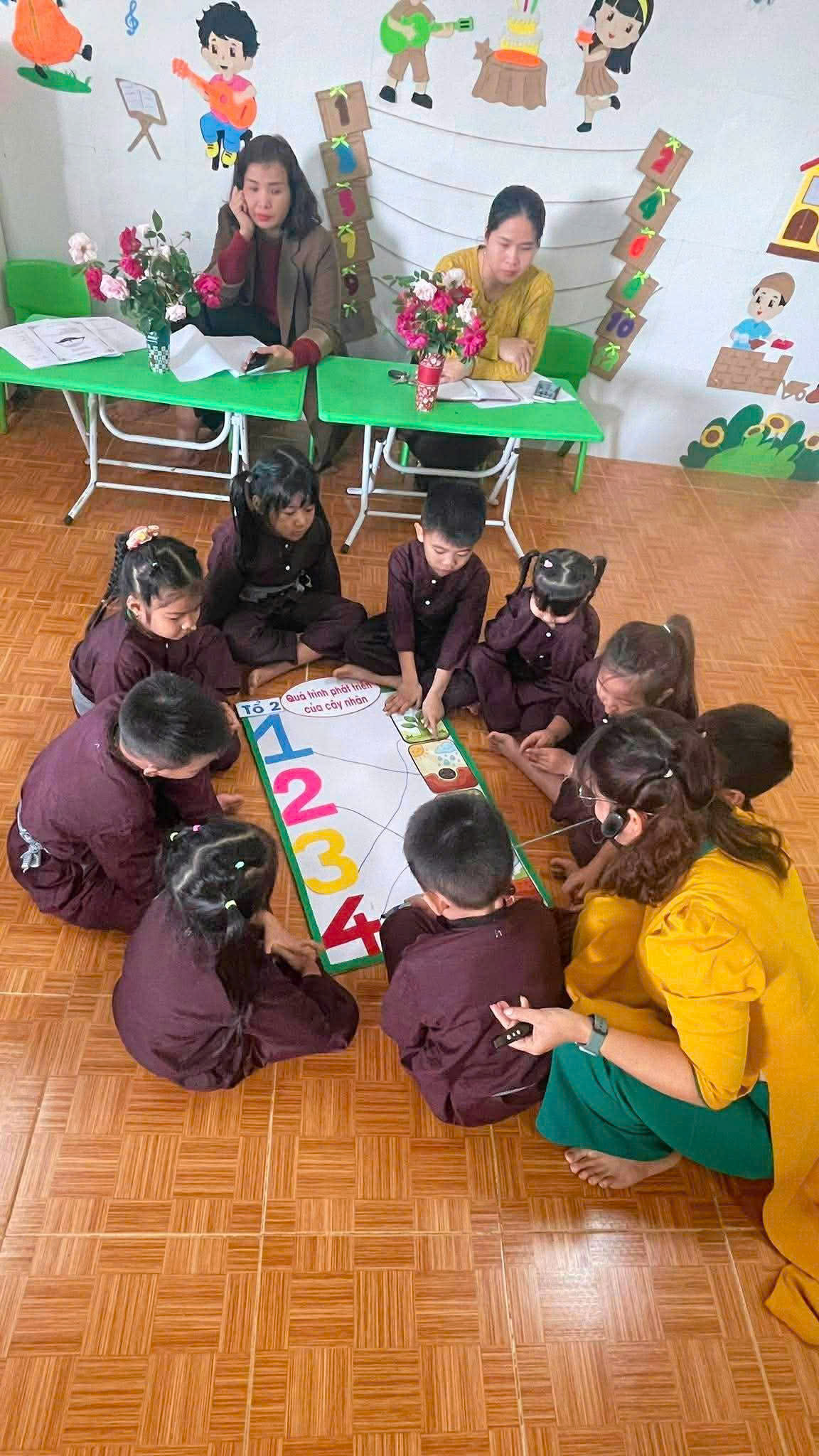 Trẻ đang thảo luận về quá trình phát triển của cây nhãn